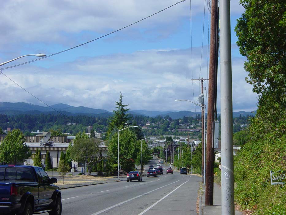 Here's another shot looking at Olympia, just to the right of the picture above. The hill in the distance, with all the houses on it, had a nasty rise on a narrow street that took everything I had to climb. Fortunately it didn't go on very long. However, this was a harbinger of things to come. Once out of Olympia, and onto the penninsula, almost every mile was a quick downhill run followed by a slow, painful climb. Good thing I took two days off.