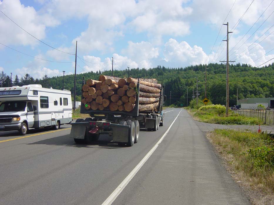 Anyway, I left them behind (they were eating lunch and I wasn't that hungry) and pressed on, heading through logging territory and getting passed every few minutes by one of these. By the way, I took this picture while still riding, not bothering to stop, so that should show you how wide and safe these shoulders are.