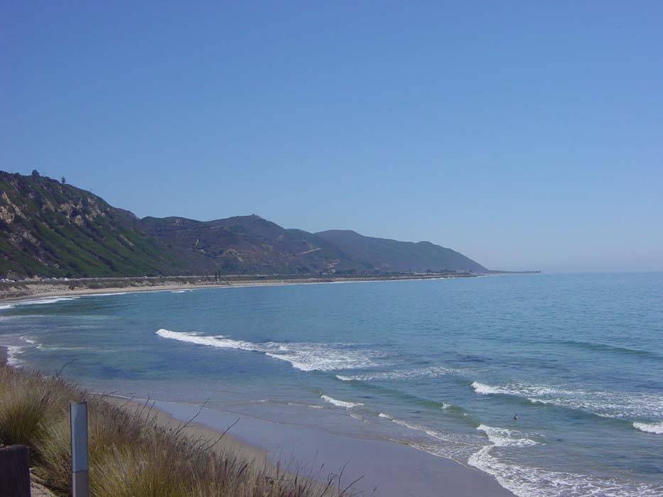 Another view of the coast heading to Malibu. The road is relatively flat, despite the hills you can see here, a marked contrast to the sections of road I had to deal with earlier in this trip. Usually, seeing a mountain like that meant nasty climbing ahead. This time, the road just passed around it at just above sea level.