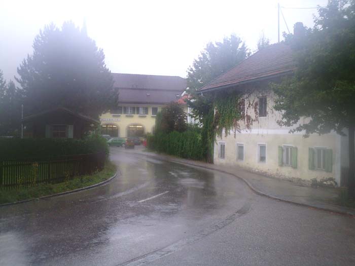 The route today meandered all over the place, turning hither and thither leaving us without any sense of where we really were, except the little "E" markers kept popping up to show us we were on the right track. We passed through numerous small towns and one larger one, Traunstein, where there was a brewery we might've taken a tour of if we weren't completely soaked. We did take a quick jaunt through the city just to check it out before returning to the river and following the path. Then we came to a spot where we got confused, and finding an "E" marker pointing back into town, we headed that way a couple klicks before realizing this couldn't possibly be the right way. After going back and confirming there really was an "E" there (pointing the wrong way) we guessed at staying on the river path and spent several anxious kilometers wondering if we'd find the next turn or if we were, in fact, totally lost. Fortunately we came to the railroad underpass on the directions and continued on, resolving to complain about this misleading arrow later when we filled out the tour evaluation form. (This wasn't the first such issue and probably won't be the last.)