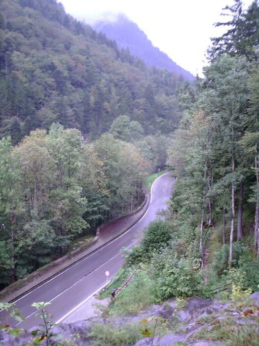 More scenery that would've looked great if it weren't for the weather (the mountain on the left just keeps on going up):