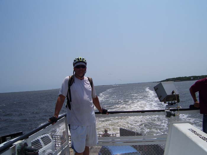 So I'll just put that out of my mind for now. The tailwind helped push me along, but still, I stopped every 5-8 miles, well before I could overheat like back in Florida those first few days. This seemed to work all right, but even with the wind, it wasn't all that enjoyable. The temperature was 85 degrees when I left my hotel just before 10am, and by the time I got to the ferry, it was 92 or more (based on signs I passed along the way). After 44 miles, I really desperately needed the long break at the ferry terminal.
