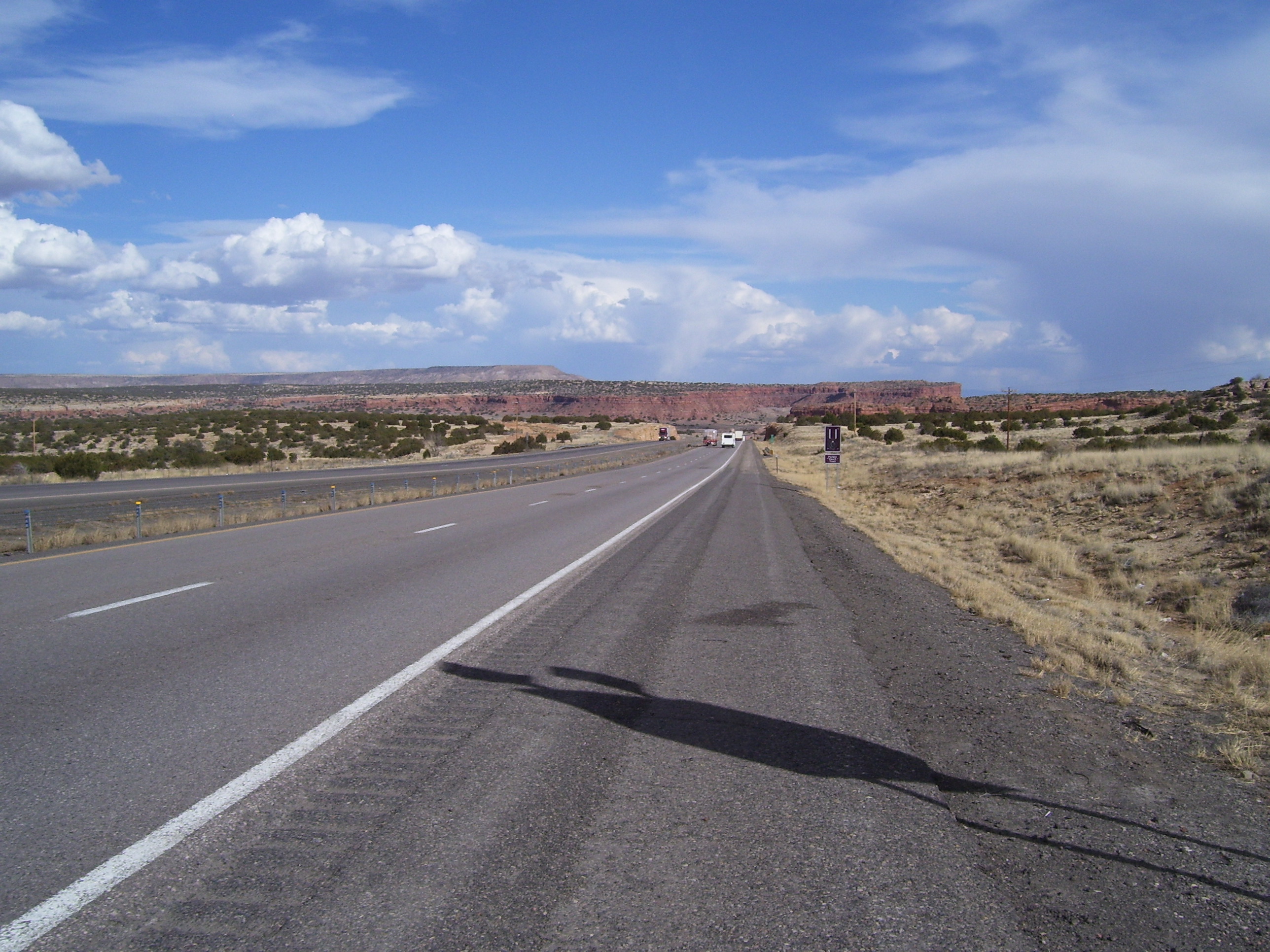 The road ahead stretched on...and on....not very many cars on it, either. The interstate is off to the right, following Route 66 all along here.