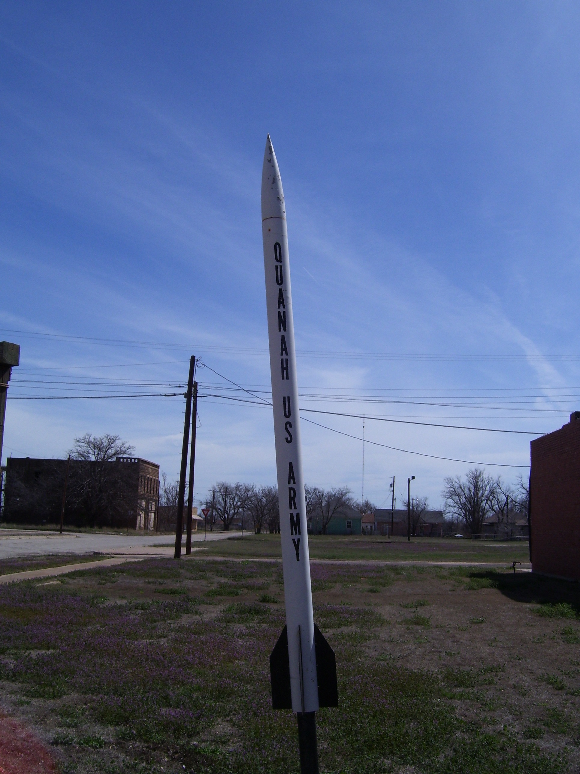 I did take a quick side trip in Quanah, and came across this...apparently it's an actual meterological rocket fired from White Sands, New Mexico, and named after the home town of one of the rocket's designers. It now stands proudly in the middle of town between a couple of buildings. Every town I come to seems to have some neat little thing like this to be found somewhere within the city limits...you just have to look for it.