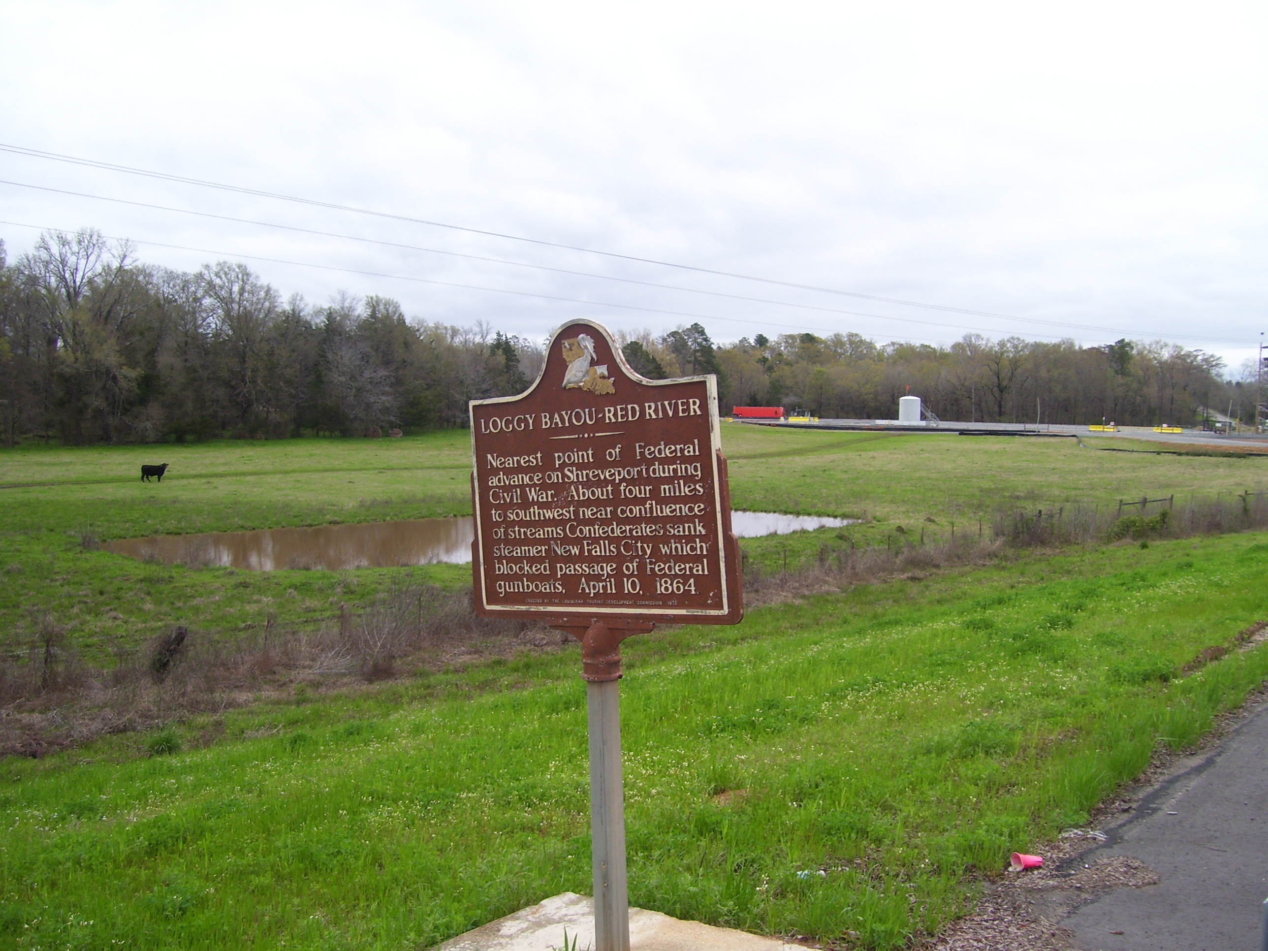 The ground's wet, obviously, but the drizzle had finished by this point and the roads were lightly traveled since it's a Sunday. Fortunately some restaurants were open, as I had lunch at a Raising Cane's, the second one I've seen this trip. Shortly after that I crossed over the Red River (yep, the very same Red River from back in Texas, which back then had no water in it...well, things have changed a bit)...