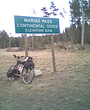 As it turns out, I hit Essex at 2:30 and didn't feel all that bad, so I pressed on. Two hours later, after 7 hours of climbing, I was at the top of Marias Pass. I did it! I climbed the Continental Divide. Here's a photo to prove it.